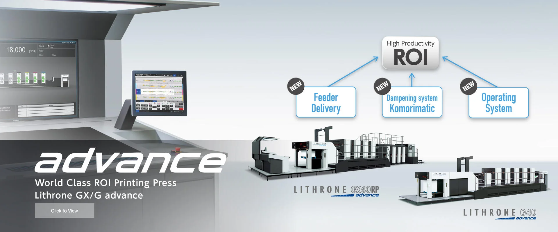 Features Products LITHRONE GX40 advance Lithrone GX/G advance Series 40" Offset Printing Press Product image for illustration purposes only. Actual product may vary. Download PDF Catalogue LITHRONE G40 advance Lithrone GX/G advance Series 40" Offset Printing Press Product image for illustration purposes only. Actual product may vary. Download PDF Catalogue A4 Download PDF Catalogue A3 LITHRONE G37P advance Lithrone GX/G advance Series 37" Convertible Perfecting Offset Printing Press Product image for illustration purposes only. Actual product may vary. Download PDF Catalogue J-throne 29 Digital Printing 29-inch Sheetfed UV Inkjet Digital Printing Press Product image for illustration purposes only. Actual product may vary. Download PDF Catalogue A3 Download PDF Catalogue A4 Latest KSA News Received Order for Two Offset Printing Presses from Malaysia’s NexG Berhad Specializing in High-Security Printing October 17, 2025 Sept 2025 distributor meeting in Malaysia October 17, 2025October 17, 2025 Thank you for reading this post, don't forget to subscribe!