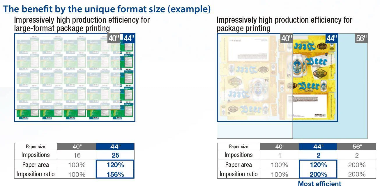 With a wide maximum sheet size of 840 mm x 1,150 mm, the Lithrone G44 advance achieves impressively high production efficiency for large-format package printing. With the unique sheet size, the Lithrone G44 advance is the perfect complement for the packaging printer as it increases overall print capacity using a larger sheet, while at the same maintaining the ease of operation similar to a B1 press.